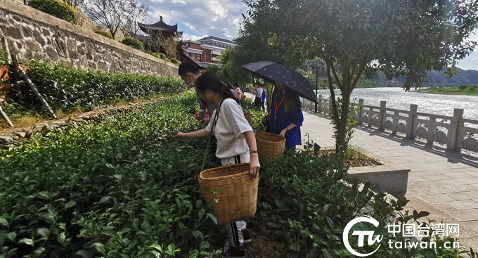 兩岸青少年體驗采茶。(中國臺灣網發)