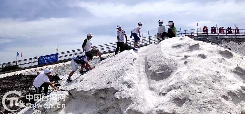 在漢沽鹽業博物館和長蘆漢沽鹽業風情區,臺胞們仔細聆聽講解和介紹,并登上瞭望臺俯瞰“七彩鹽田”,親手制作憨態可掬的鹽塑,體驗了跨越千年文明的全國非遺瑰寶——漢沽古法制鹽工藝,了解濱海民俗,體驗鹽業風情。“吸耀日之光,憑皓月之力,依沃土之廣,聚人文之功!边@是人們對古法日曬鹽技藝的高度概括,如今也讓前來參觀的臺胞們不住地感嘆大自然的磅礴之力。