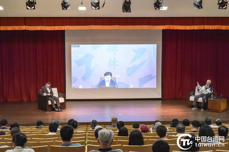 開幕式后,西安碑林博物館副館長劉東平和長期在臺(tái)推廣書法教育的臺(tái)灣藝術(shù)大學(xué)教授李郁周,通過兩岸視頻連線的方式,舉辦以“書法的時(shí)代美感與意義——從西安碑林著名碑藏談起”為主題的書藝交流講座。