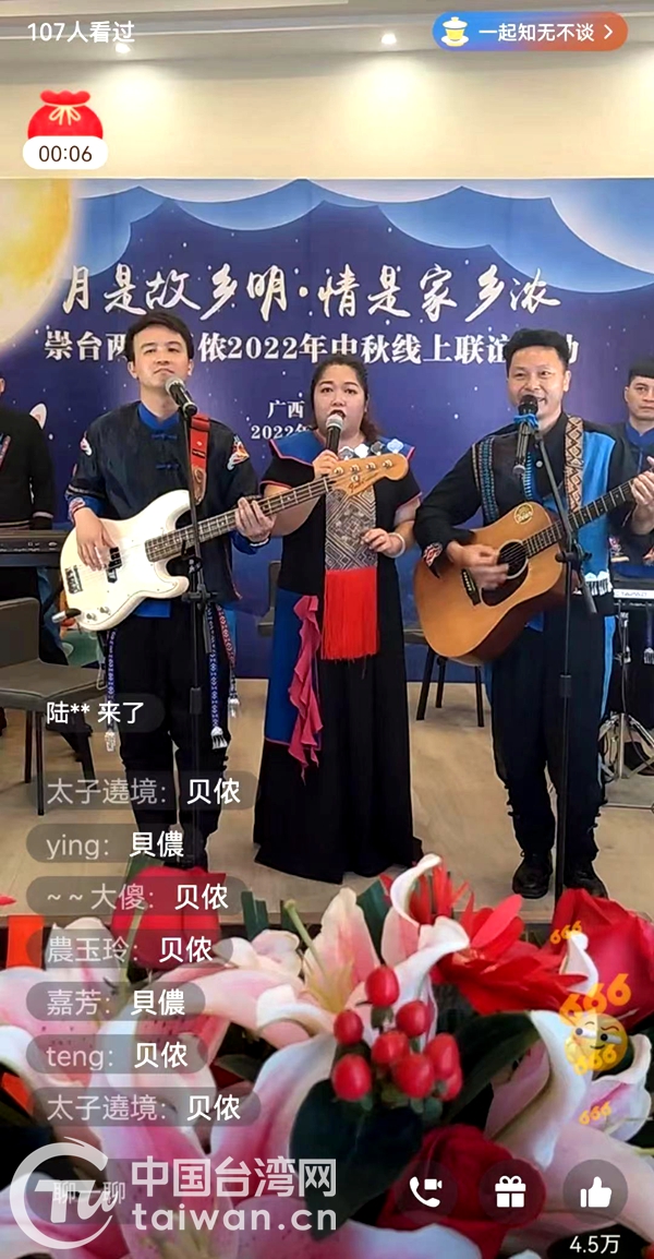 中國臺灣網9月13日訊 “太喜歡這樣的活動了,不僅聽到了熟悉的鄉音,看到了家鄉的美好變化,還感受到了來自家鄉親人的關懷與溫暖,希望這樣的活動多多舉辦。”近日,廣西崇左市舉辦以“月是故鄉明·情是家鄉濃”為主題的“崇臺兩岸貝儂”2022年中秋線上聯誼活動,與100多名遠嫁臺灣的陸配在線上共慶佳節,參加活動的陸配紛紛留言作上述表示。