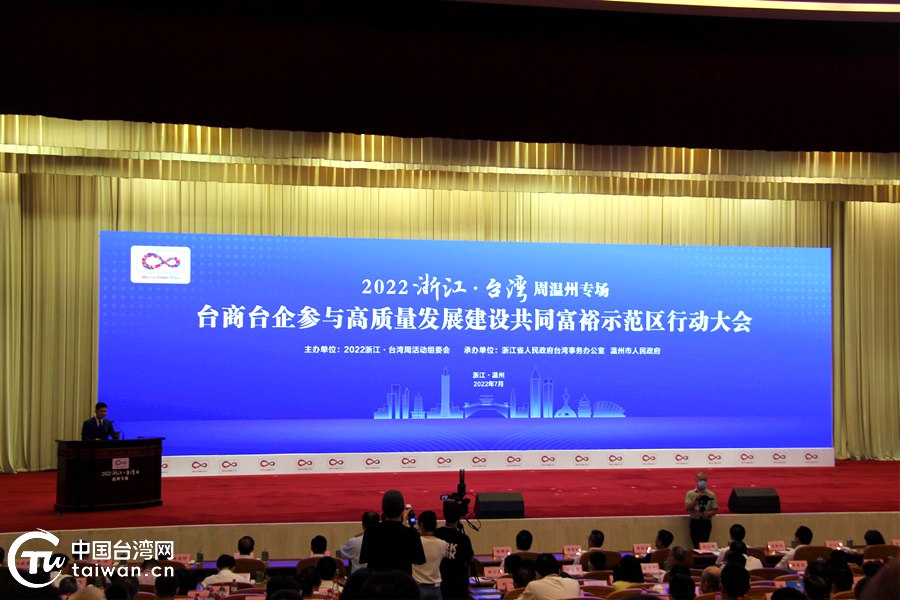 2022年7月21日,浙江·臺(tái)灣周溫州專場(chǎng)暨臺(tái)商臺(tái)企參與高質(zhì)量發(fā)展建設(shè)共同富裕示范區(qū)行動(dòng)大會(huì)開幕現(xiàn)場(chǎng)。(中國(guó)臺(tái)灣網(wǎng) 王大勇 攝)