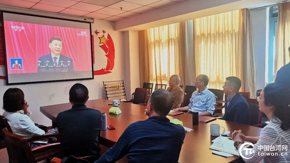 江西上饒市臺辦組織全體干部收看中國共產黨第二十次全國代表大會開幕會。(中國臺灣網發)