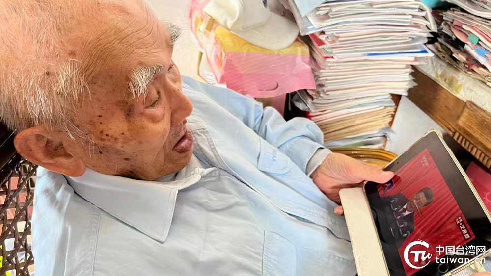 寧波97歲臺灣省籍同胞尤錕铻堅持全程觀看開幕會。(中國臺灣網(wǎng)發(fā))