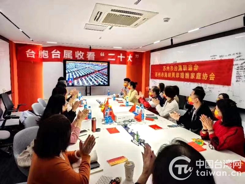 蘇州市臺屬聯誼會、蘇州市海峽兩岸婚姻家庭協會組織臺胞臺屬集中收看二十大開幕會(圖片來源:江蘇省臺辦)