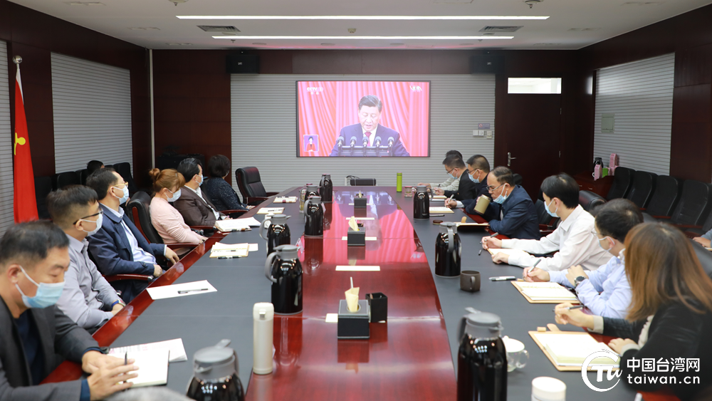 天津市委臺辦領導班子成員、黨員干部和在津臺胞代表集中收看開幕會直播。(中國臺灣網發)