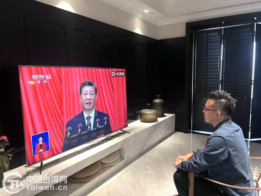 在川臺青李偉國收看黨的二十大開幕會。(中國臺灣網發)
