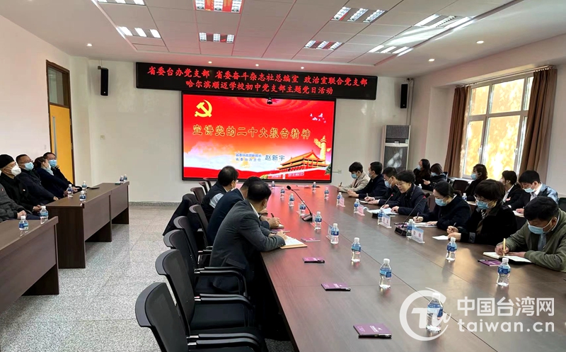 中國臺灣網10月28日訊 10月27日,黑龍江省委臺辦機關全體黨員、省委《奮斗》雜志社總編室、政治室聯合黨支部全體黨員走入臺資企業哈爾濱順邁學校,開展“宣講黨的二十大精神”主題黨日活動,推動“能力作風建設年”活動走深走實。