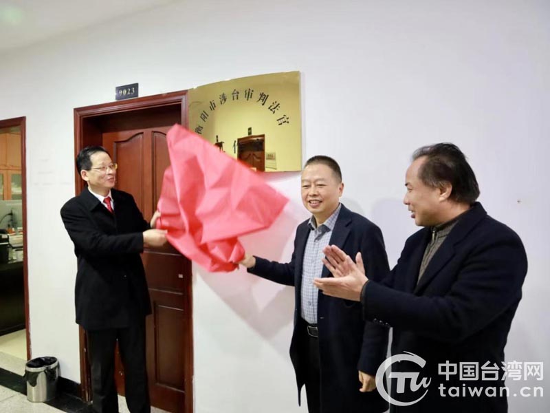 中國臺灣網(wǎng)12月12日訊 近日,衡陽市涉臺審判法官工作室在衡陽市中級人民法院掛牌成立。衡陽市委副秘書長龍亞春與市中級人民法院黨組副書記、副院長馮衛(wèi)共同為“衡陽市涉臺審判法官工作室”揭牌,衡陽市委臺辦副主任劉秩坤,市委臺辦、市中級人民法院民三庭等相關(guān)部門負責人參加揭牌儀式。