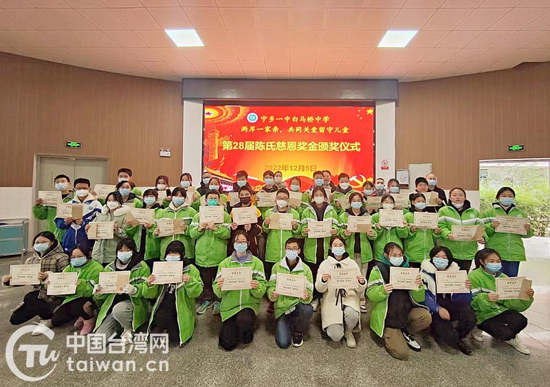 中國(guó)臺(tái)灣網(wǎng)12月12日訊 第28屆陳氏慈恩獎(jiǎng)助學(xué)金頒發(fā)儀式近日在湖南省寧鄉(xiāng)一中白馬橋中學(xué)圓心報(bào)告廳隆重舉行。“陳氏慈恩獎(jiǎng)學(xué)金”是由湘籍臺(tái)胞陳智華先生代表其家人設(shè)立,獎(jiǎng)金來(lái)自其父陳邦榮先生在臺(tái)灣為獎(jiǎng)勵(lì)湘籍學(xué)生而設(shè)立的“陳氏慈恩獎(jiǎng)學(xué)基金會(huì)”,用于獎(jiǎng)勵(lì)白馬橋中學(xué)的優(yōu)秀學(xué)生,幫扶家庭困難的優(yōu)秀學(xué)生。