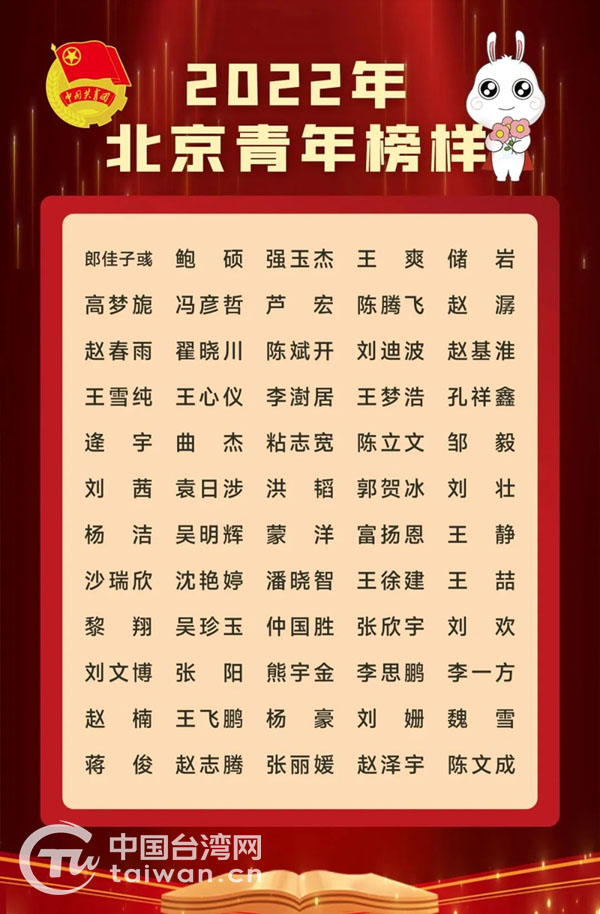 2022年北京青年榜樣名單(圖片來源:北京市臺辦)
