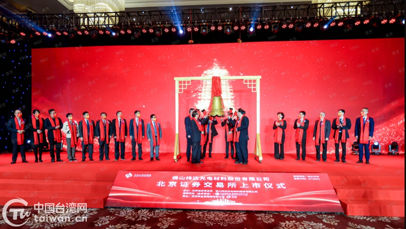 中國臺灣網1月10日訊 日前,佛山緯達光電材料股份有限公司(簡稱“緯達光電”,股票代碼為873001)以“云敲鐘”方式宣布在北交所上市,該公司是第一家由臺商與廣東省屬國有企業合資設立,并在大陸資本市場成功上市的企業。