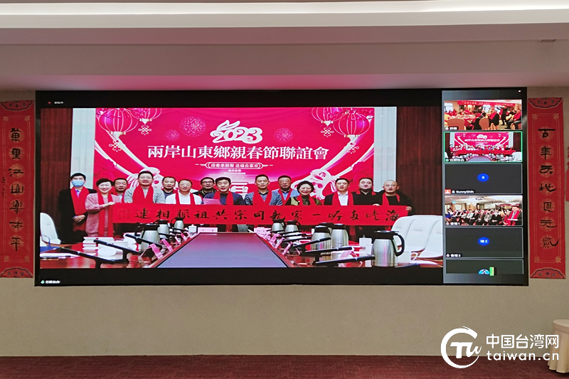 中國臺灣網1月15日訊 海峽難隔鴻雁,歲月不改人心。為弘揚中華傳統文化,促進兩岸同胞心靈契合,1月14日農歷小年,山東省臺屬聯誼會、濟南市臺屬聯誼會、日照市臺屬聯誼會與臺灣山東同鄉會共同舉辦了“迎春親朋聚 送福合家歡”兩岸山東鄉親春節聯誼會,為兩岸鄉親提供了“敘親情、聯鄉誼,謀和平、話發展”的平臺。濟南、日照市臺屬聯誼會代表和臺灣山東同鄉會、各縣市山東同鄉會負責人及山東日照同鄉會代表240余人,分別在濟南、日照、臺北三地活動現場,通過視頻連線的方式參加了聯誼活動,共同欣賞歌舞表演、共慶中華民族傳統節日新春佳節。