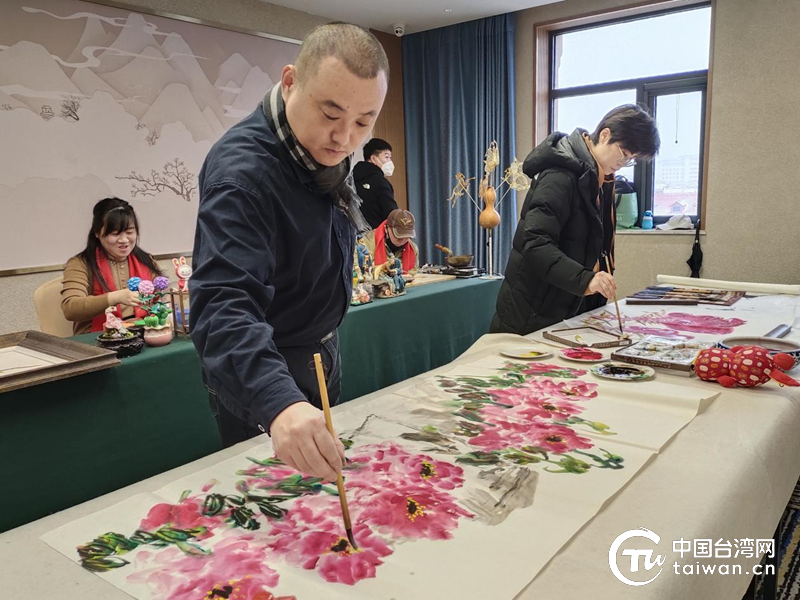 書畫創作現場筆走龍蛇、大氣溫婉,描摩節日盛景和藝術家心中愿景,為兩岸同胞增進認同、融洽感情、弘揚中華文化架起一座連心橋。