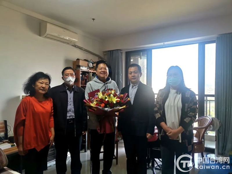 百色市委常委閆炳辰(右二)慰問臺灣教師章國威(中)(圖片來源:百色市臺辦)