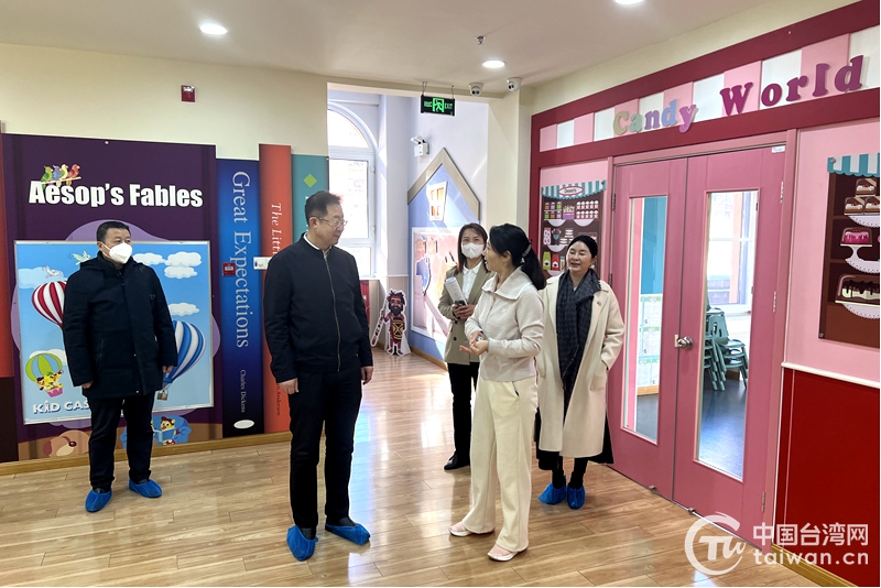 張玉奪主任一行在臺(tái)企吉的堡幼兒園開展調(diào)研(圖片來(lái)源:吉林省臺(tái)辦)