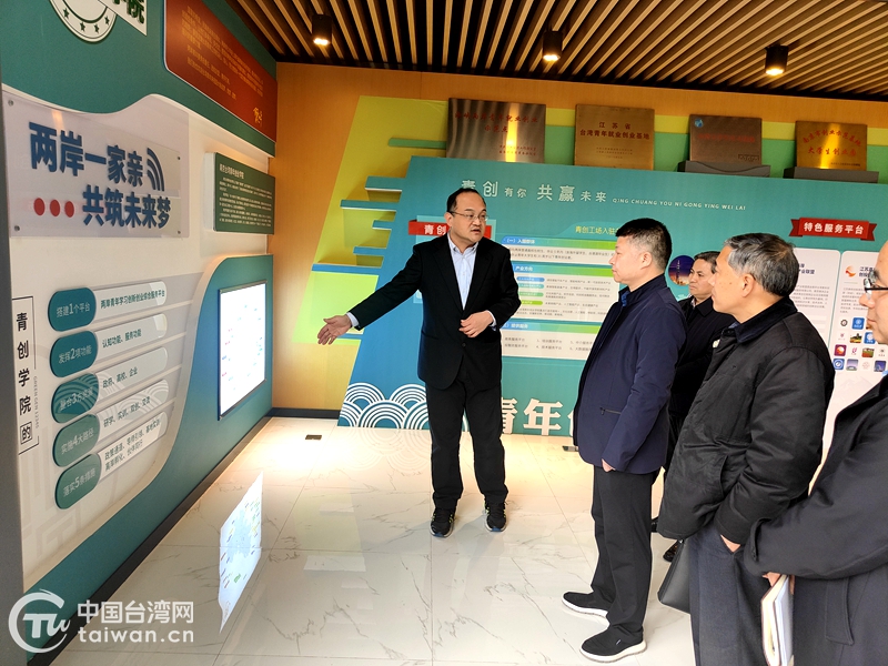 在海峽兩岸青年就業創業示范點——南京臺灣青年創業學院、江蘇省對臺交流基地牛首山文化旅游區,胡啟書聽取了學院和基地在制度機制建設、活動開展等方面的情況介紹。