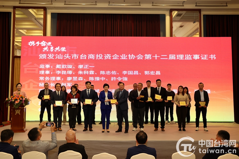 為第十二屆理監事會頒發證書(圖片來源:汕頭市臺辦)