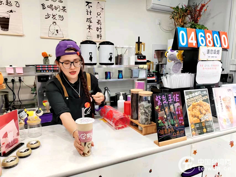 中國臺灣網3月21日訊 在國家級海峽兩岸青年就業創業基地——亞臺青(成都)海峽青年創業園一樓臨街鋪面,有一家名為“紫氣茶來”的奶茶店,店主是一位來自臺灣的90后女孩——陳韻如。