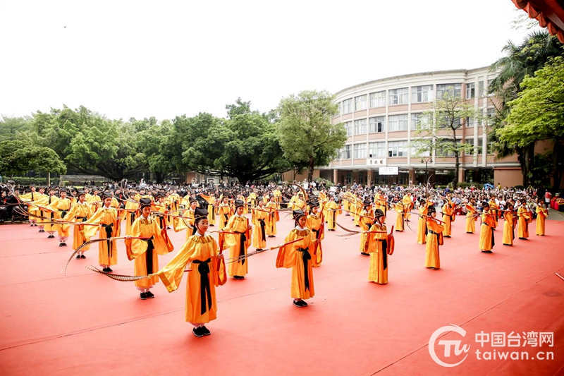 “巍巍中華,炎黃子孫,血脈至親,道統相承……”4月14日上午,東莞臺商子弟學校一派莊嚴喜慶,鏗鏘古樸的弦樂在校園合奏共鳴,學校為319名高二學生舉行成年禮,來自海峽兩岸200多位嘉賓及400多位臺商、家長參加活動。與會嘉賓與師生、家長共同祭拜中華民族始祖炎帝神農氏,319位臺生身著儒生長袍進行“三加禮”(跪拜父母、接受師長祝福與嘉賓授冠),遵照中華傳統禮儀祭拜禮告中華民族始祖炎帝神農氏,宣誓成年。