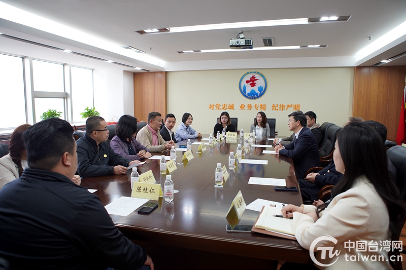 臺(tái)灣云林麥寮拱范宮管理委員會(huì)參訪團(tuán)拜訪青島市臺(tái)港澳辦(圖片來源:青島市臺(tái)港澳辦)