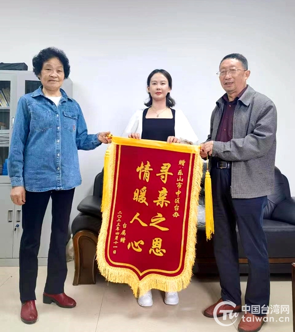 中國臺灣網4月27日訊 近日,一位年逾古稀的老人在家人陪同下來到四川樂山市市中區臺辦,將一面印有“尋親之恩 情暖人心”的錦旗送到工作人員手中。她激動地表示,全家人心中多年的牽掛終于“落了地”。