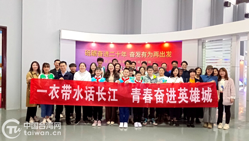 兩岸青年在“百年武水紅色印記”主題展前合影(圖片來源:武漢市臺辦)