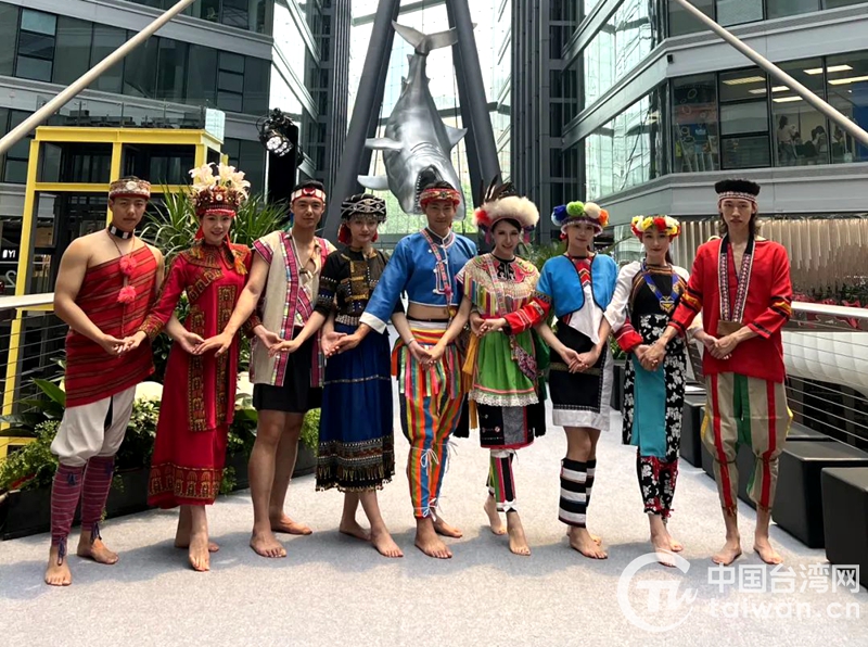 現場身著臺灣少數民族服飾的模特合影(圖片來源:北京市臺聯)