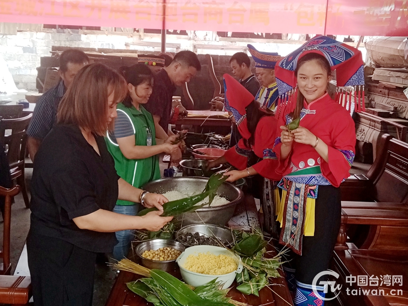 6月21日,廣西河池市多地邀請當(dāng)?shù)嘏_胞臺屬與當(dāng)?shù)孛癖婇_展端午聯(lián)誼活動(dòng),兩岸同胞包著粽子、嘮著家常、發(fā)著微信、打著電話,相互問候,互祝節(jié)日安康。
