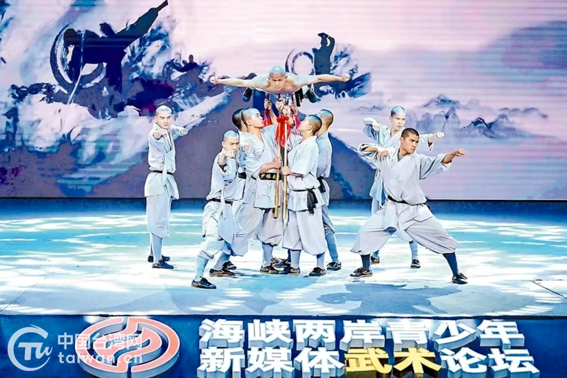論壇現場還穿插了由嵩山少林寺武僧團、閩臺宋江陣團隊、北京市什剎海體育武術學校帶來的武術表演,以及由兩岸同胞組建的黑貓樂隊演繹的武俠歌曲大聯唱,將現場氣氛推向高潮。