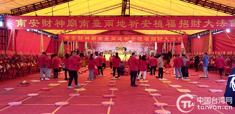 中國臺(tái)灣網(wǎng)2月2日訊 近日,由南安市道教協(xié)會(huì)、南安財(cái)神廟共同舉辦的南臺(tái)財(cái)神文化交流活動(dòng)暨祈福招財(cái)法會(huì)在南安市水頭鎮(zhèn)福鼎山舉辦,37位在閩臺(tái)商及當(dāng)?shù)匦疟姽蚕硎?huì)。