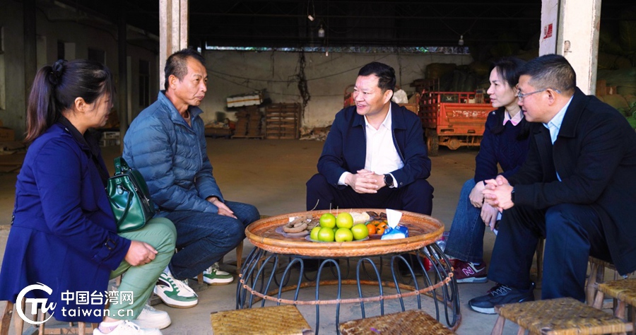 云南省委臺辦主任鄧恒源(中)走訪慰問西雙版納臺胞臺商榮興農業有限公司徐玉英夫婦(左)。(中國臺灣網發)