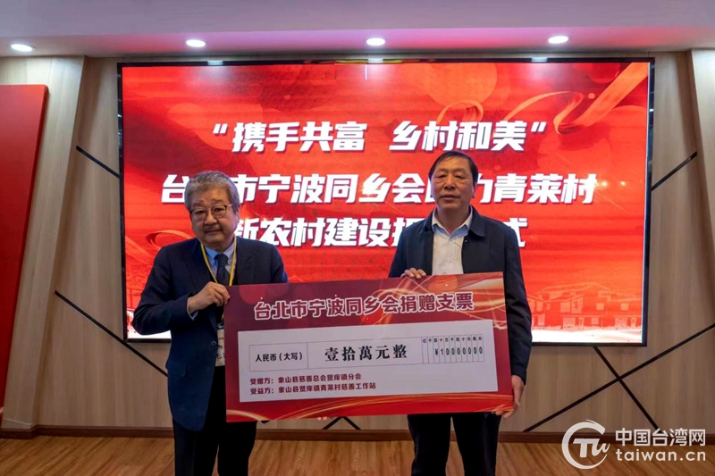 中國臺灣網3月18日訊 近日,“攜手共富·和美鄉村”助力寧波市青萊村新農村建設捐贈儀式在象山縣賢庠鎮青萊村舉行,臺北市寧波同鄉會理事長毛家瑜代表該會向青萊村捐贈10萬元,定向用于新農村建設。
