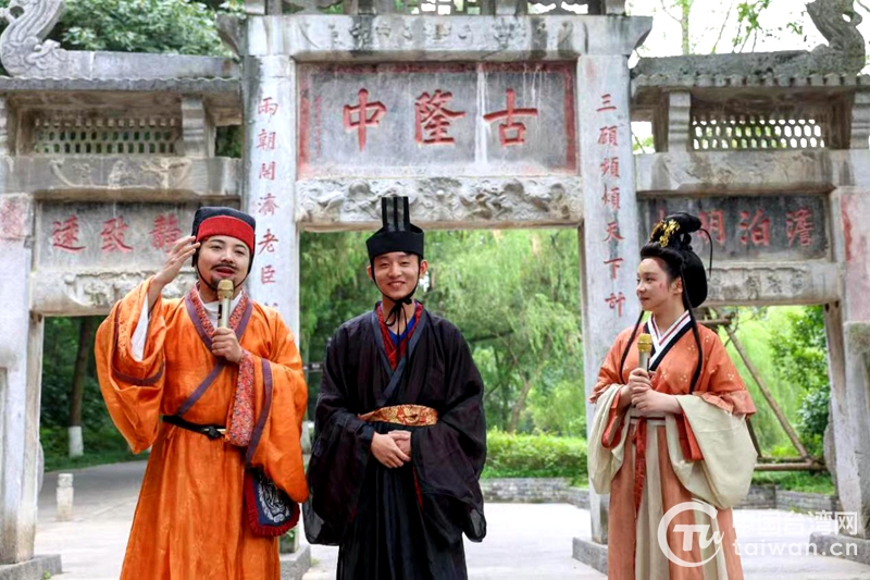 活動(dòng)中,一群穿著漢服、滿臉笑意的學(xué)生吸引了游客的注意。青年作家、漢服研究者周渝、侯佳明身穿漢服,以“遙想諸葛孔明——在古隆中愛上三國(guó)漢服”為主題,向臺(tái)灣學(xué)生講述諸葛亮的傳奇故事,并介紹漢服的發(fā)展史和文化特色。