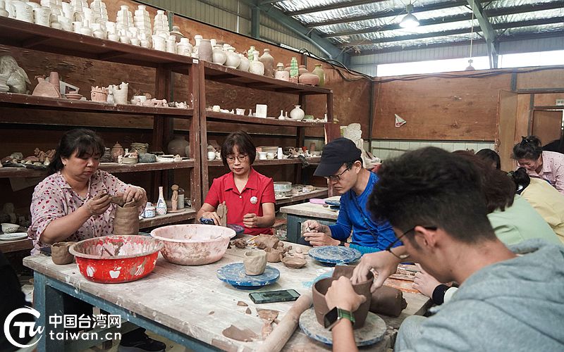 臺灣師生體驗壽州窯制作。(中國臺灣網發)