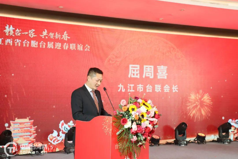 九江市臺聯(lián)會長屈周喜致辭。(中國臺灣網(wǎng)發(fā))