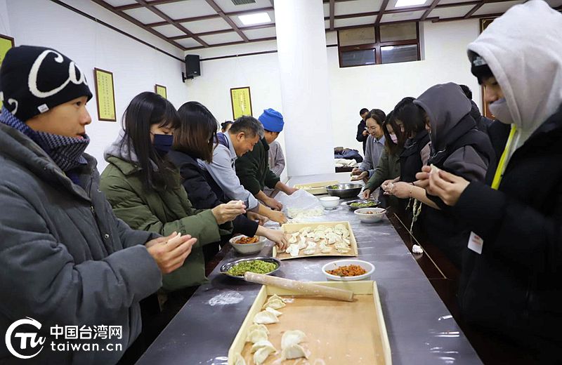 濟臺同胞一起動手包水餃。(中國臺灣網發)
