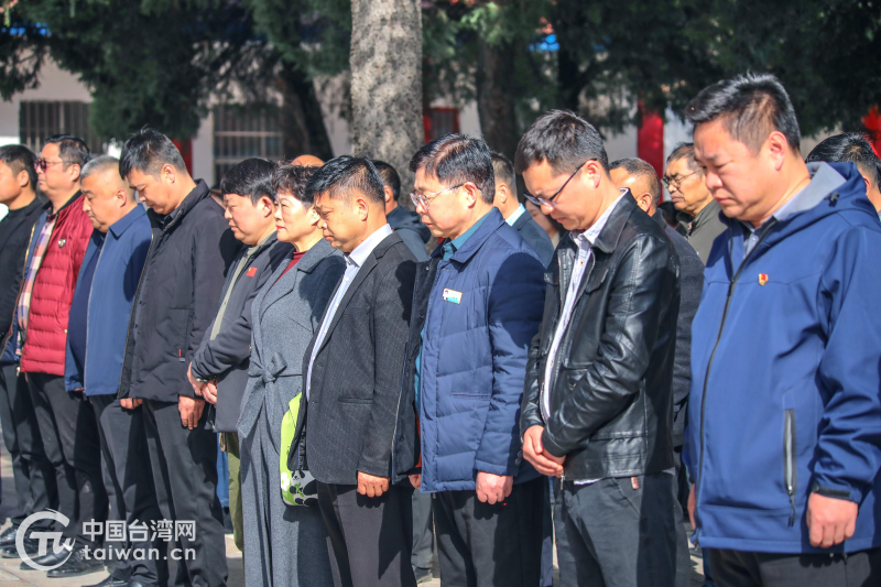 臺胞臺屬在革命烈士紀(jì)念碑前肅立默哀。(中國臺灣網(wǎng)發(fā))