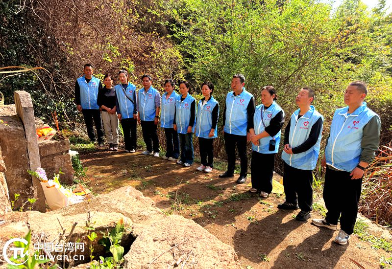 奉化區溪口鎮臺聯“鄉愁志愿服務隊”隊員正在幫助無法親自到寧波的臺胞掃墓祭祀。(中國臺灣網發)