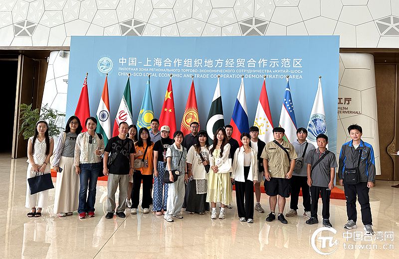 臺(tái)灣青年在上合之珠國(guó)際博覽中心合影。(中國(guó)臺(tái)灣網(wǎng)發(fā))
