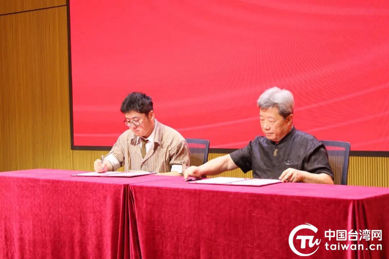 廈門秋地藝術中心與臺灣中華文創發展促進會簽訂戰略合作協議。(中國臺灣網發)