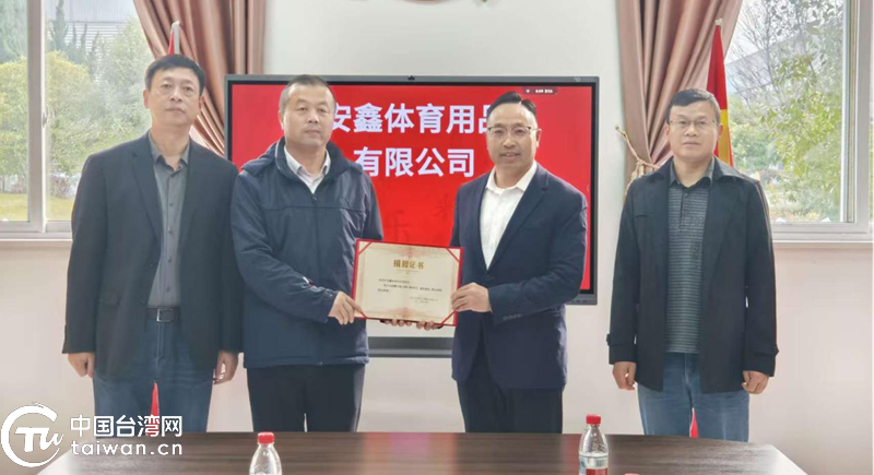 安慶市安鑫體育用品有限公司收到捐贈證書。(中國臺灣網(wǎng)發(fā))