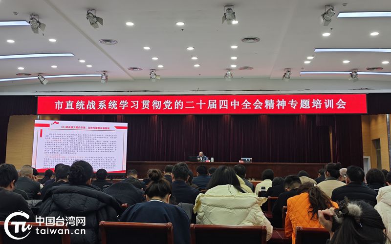 中國臺灣網12月25日訊 12月23日,商丘市委統戰部召開直統戰系統學習貫徹黨的二十屆四中全會精神專題培訓會,特邀請商丘市委黨校副教授張曉輝以《深學篤行二十屆四中全會精神 不斷開創中國式現代化新局面》為題作專題輔導授課。商丘市臺企臺屬代表、市臺辦系統有關人員參加學習。