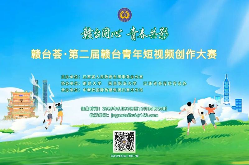 中國臺灣網12月31日訊 “贛臺薈·第二屆贛臺青年短視頻創作大賽”獲獎名單日前揭曉,共評選出作品類獎項19個和組織類獎項3個,其中作品類獎項包括金獎1名、銀獎2名、銅獎5名、優秀獎6名、人氣獎5名。此次大賽以“贛臺同心 青春共影”為主題,旨在持續深化贛臺兩地青年文化交流,推動兩岸青年以創新形式展現文化融合與社會發展成果,傳遞兩岸青年共同的家國情懷與時代精神。