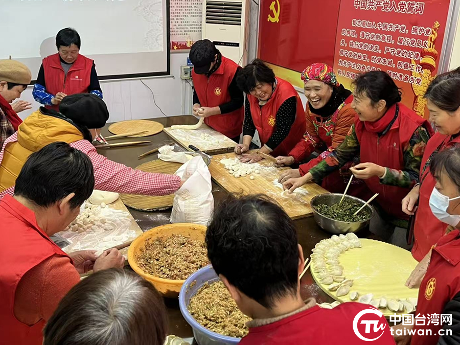 臺胞臺屬代表與社區黨員志愿者一起包餃子(中國臺灣網發)