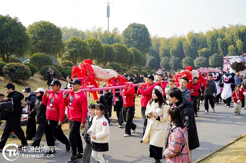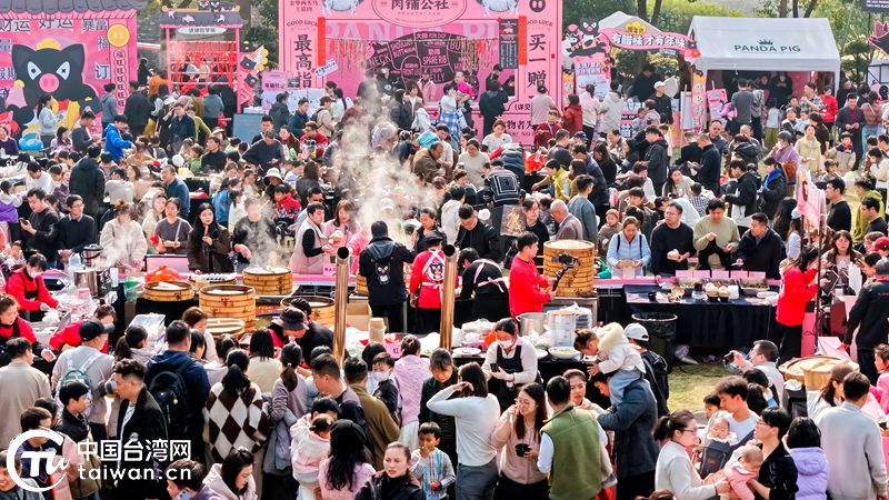 活動當(dāng)日上午,臺胞臺屬們循著喧天鑼鼓,加入“年豬大巡游”隊伍,紅燒肉、豬血湯讓臺胞們大飽口福,“無論是熱鬧的巡游場景,還是美味的全豬宴,都是從未有過的新奇體驗(yàn)。”臺胞朱俊宏坦言,“尤其是‘兩頭烏’很有名,打算買一些年貨給親戚朋友們都嘗嘗。”