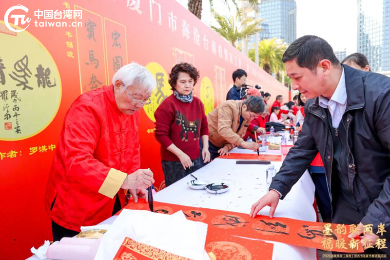 2026海峽兩岸(海滄)百名書法家書春送福聯袂“福傳海滄·閱見文明”福袋迎新活動在廈門海滄市民廣場拉開帷幕。(中國臺灣網發)