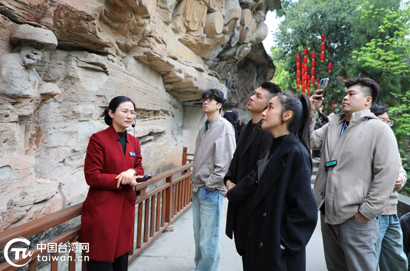 臺灣青年在大足石刻參觀。(中國臺灣網)