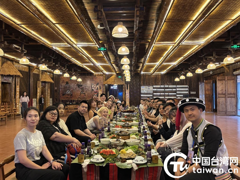 采訪團一行在滄源佤族自治縣拍攝、體驗佤族特色美食“佤王宴”。(中國臺灣網(wǎng)記者 劉琳 攝)