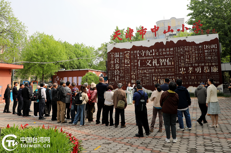 參訪團一行在天津市中山小學參觀。(中國臺灣網發)