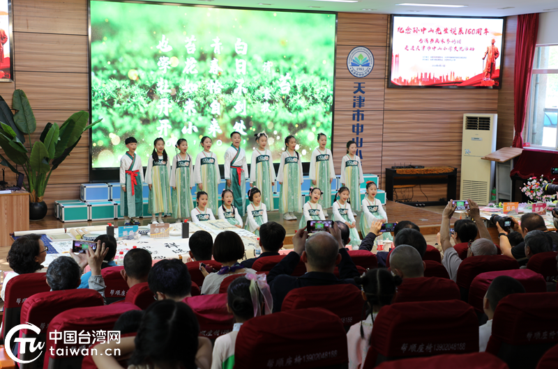 在中山小學博愛報告廳,孩子們用稚嫩卻真摯的聲音、靈動的舞姿與悠揚的歌聲,為現場嘉賓呈現了一場精彩紛呈的文藝表演。身著古裝的孩子們依次登臺,帶來古詩詞誦讀《春曉》《龍文》《苔》,清脆的童聲交織成優美的旋律,將古典詩詞的意境娓娓道來,讓在場嘉賓沉醉其中。快板表演《哪吒》與課本誦讀《歡迎臺灣小朋友》《日月潭》《不懂就要問》接踵而至,稚嫩的聲音里滿是對臺灣同胞的熱忱歡迎,傳遞著兩岸孩童純真的情誼。最后,天津市中山小學海峽合唱團帶來歌曲《丟丟銅》《我們的孫中山》,悠揚的歌聲唱出了兩岸同胞同根同源的心聲,也將對中山精神的傳承、對兩岸和平發展的美好期許,深深印在每個人的心底。